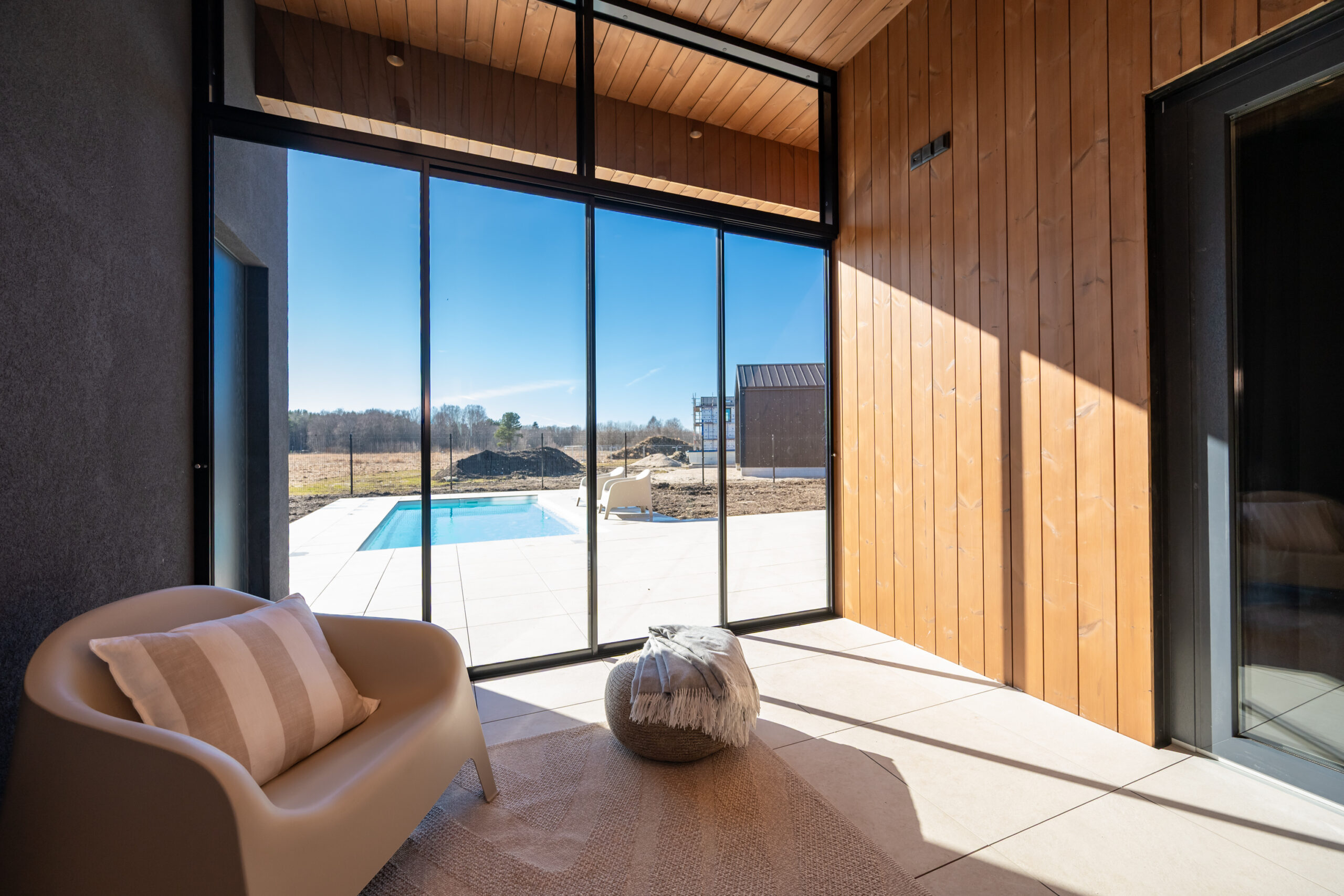 Aknad on kolmekordse paketiga PVC raamidel, mis tagavad sooja- ja helipidavuse. Maja ning välibasseini kütab maasoojuspump (16 kW) ning jahutab õhk-õhk pump. Kokku on eluruumidesse paigaldatud 5 jahutuskassetti – üks igas magamistoas ning 2 elutoas.